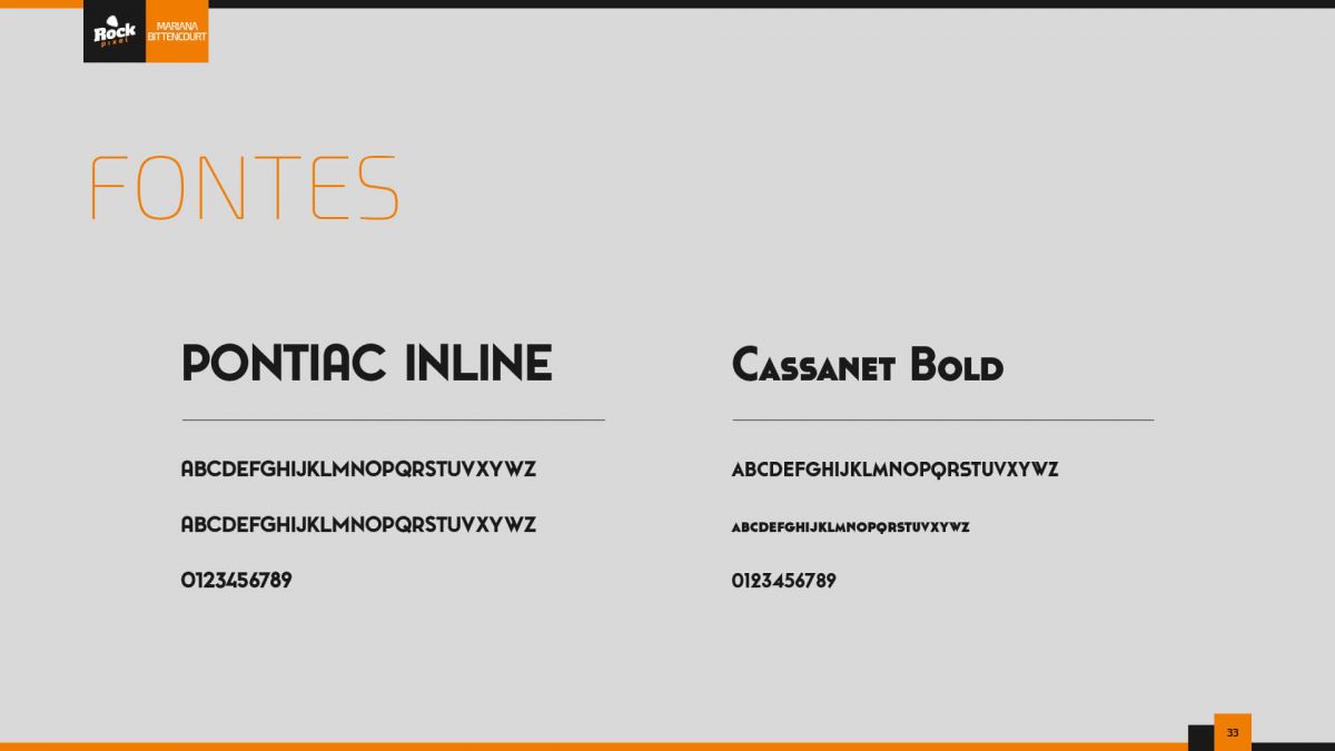 No manual também devem conter o nome das fontes utilizadas, e quais os espaçamentos mínimos seguros para aplicação da marca em ambientes com muitos elementos ao redor.